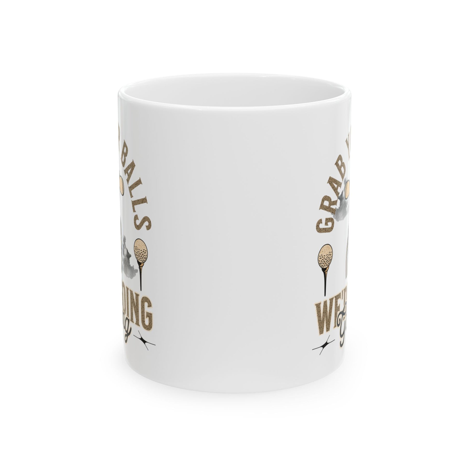 Elevate your morning routine with our Funny Golf Mug 11oz. Designed with a playful "grab your balls we're going golfing" message, this ceramic mug is the perfect gift for any golf lover. Plus, it's BPA and lead-free for worry-free sipping. Start your day on par with this humorous and safe mug.