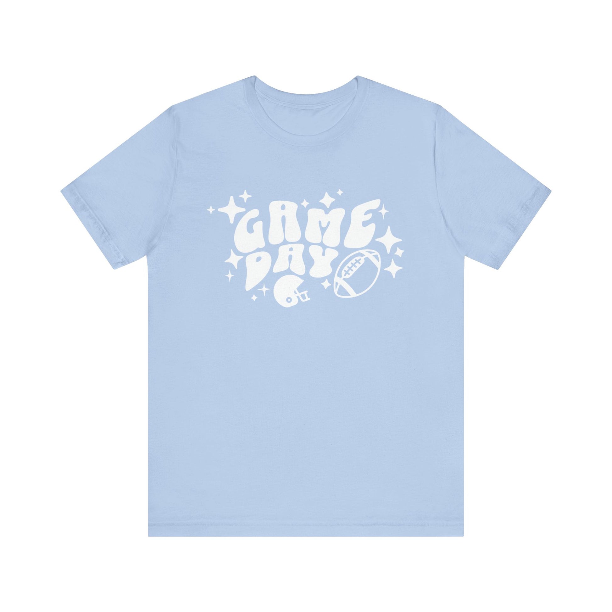 This football season, elevate your game-day experience with our Game Day Shirt. It's more than just apparel; it's a statement of your dedication to the sport and your team. 🏈🎉📣 This classic unisex jersey short-sleeve tee fits like a well-loved favorite. Soft cotton and quality print make users fall in love with it over and over again. These t-shirts have ribbed knit collars to bolster shaping. The shoulders are tapered for a better fit over time. Dual side seams hold the garment's shape for longer. The 100% Airlume combed and ring-spun cotton feels soft to the touch. Bella+Canvas manufactures all its products in the US and internationally in a humane, no-sweat-shop, sustainable way and is part of the Fair Labor Association as well as Platinum WRAP certified. .: The tear-away label minimizes skin irritations. .: Fabric blends: Ash - 99% Airlume combed and ring-spun cotton, 1% polyester Heather colors and Solid Black Blend - 52% cotton, 48% polyester, Athletic Heather and Black Heather - 90% cotton, 10% polyester.